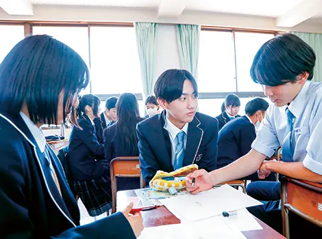 総合的な探究(探究基礎、探究ゼミ)あらゆる課題を自分ごととして捉える感性を育成。プレゼンテーションをはじめ、多くの仲間と協働するために必要なスキルを身につけます。
