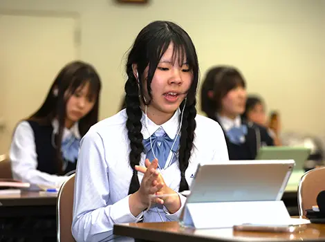 多彩な語学実習プログラムを通して主体的に自分の意見を「英語で発信する力」と、各教科さまざまな角度から深く考えさせる手法によって「探究する力」をしっかりと身につけます。3年間で将来の多様化する大学入試形態に対応できる能力を培っていきます。