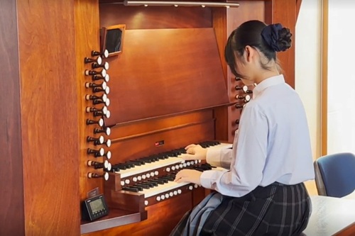 • 実際に弾いてみて、音を重ねたり、たくさんの違う音色を出すことができたりと、パイプオルガンの楽しさを知ることができました。(1年女子)