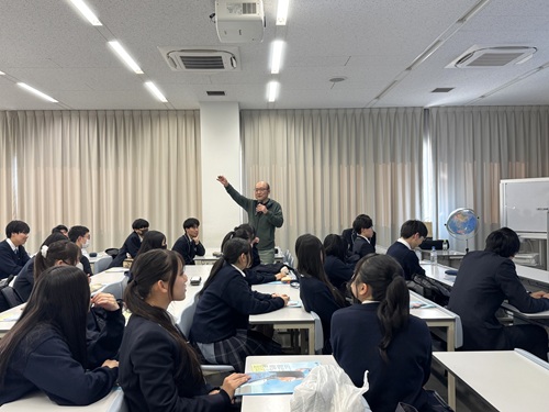 国際大クラス2年生が神戸国際大学を体験した「KOKUSAI DAY」。この日は附属高校国際大クラスOBが大学生活についてガイダンスを行ってくれたほか、経済学部 遠藤教授の「リゾートって何?」、リハビリテーション学部 小谷助教授「BREATH CODE~呼吸リハビリの科学に挑め」を希望進路に応じて受講し、経済学部 中村教授の「神戸から世界へ!」を全員が受講しました。