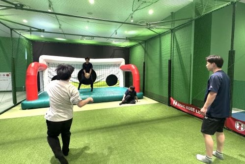 話を聴いた生徒たちは、年の近い先輩の奮闘は「リアル」で、その挑戦を「楽しそう!」と感じたよう。そこで早速、国際大クラスは神戸国際大学から程近い神戸スーパースタジアムへ徒歩で移動!同施設を体験してみました。体験後には、SNSでの広告を増やす・アトラクションの種類を増やす・有名人や有名なキャラクターとのコラボ企画を行う・期間限定で入場料を割引する、などを発案。実際に施設に行って体験することで、自分はどう感じて自分ならどうするかという視点で考えることができたようです。