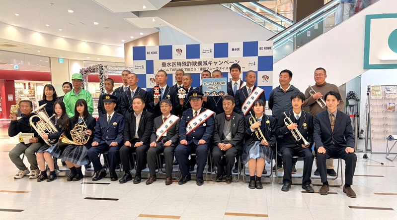 2025年11月20日(木)、ブルメール舞多聞で行われた垂水区特殊詐欺撲滅キャンペーン~チームTARUMIで防ごう!確認プレーでナイスセーブ!~(垂水警察署主催)に硬式野球部と吹奏楽部が参加しました。