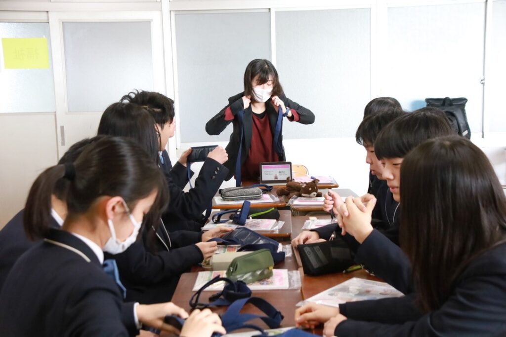 実習中の国際科を除く、普通科の生徒が参加しました。まだ1年生ではありますが、少し先の自分について考える機会として、毎年行っています。日頃の授業ではできない体験を通じて、進路について考えるきっかけとしました。