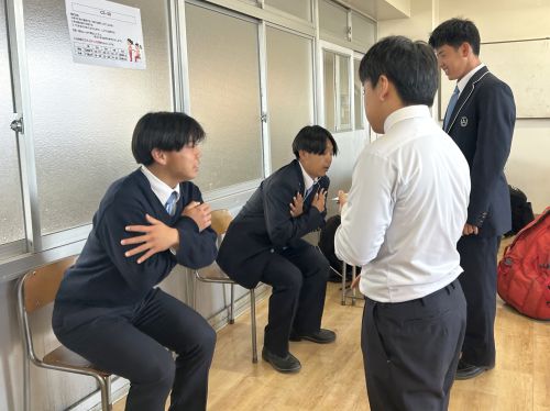 アシスタントメンバーは12月初旬に神戸国際大学から合格通知を受け取ると、早速1年生の進路ガイダンスを盛り上げるためのアイデア出しを始めました。このガイダンスは毎年、スポーツをしている生徒が理学療法士分野を希望することが多いことから、メンバーのひとりが「『4スタンス理論』(ヒトの身体特性を4種類に分類する理論)で身体の使い方を学んでもらおう」と提案。それを踏まえて現役理学療法士でもある小谷助教(神戸国際大学リハビリテーション学部)が詳細を練ってくださいました。