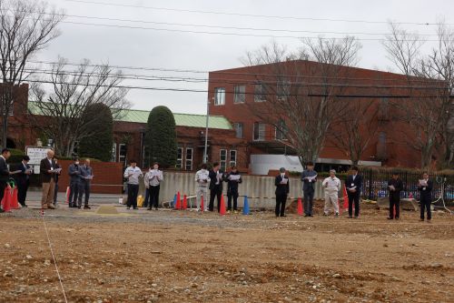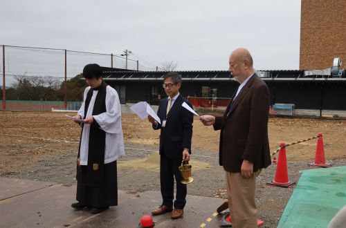 2026年2月26日(木)、ミカエルホール(講堂兼体育館)の起工式がチャプレンの司式により行われました。いよいよ、新校舎建築工事もラストスパートです。