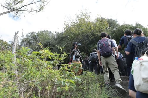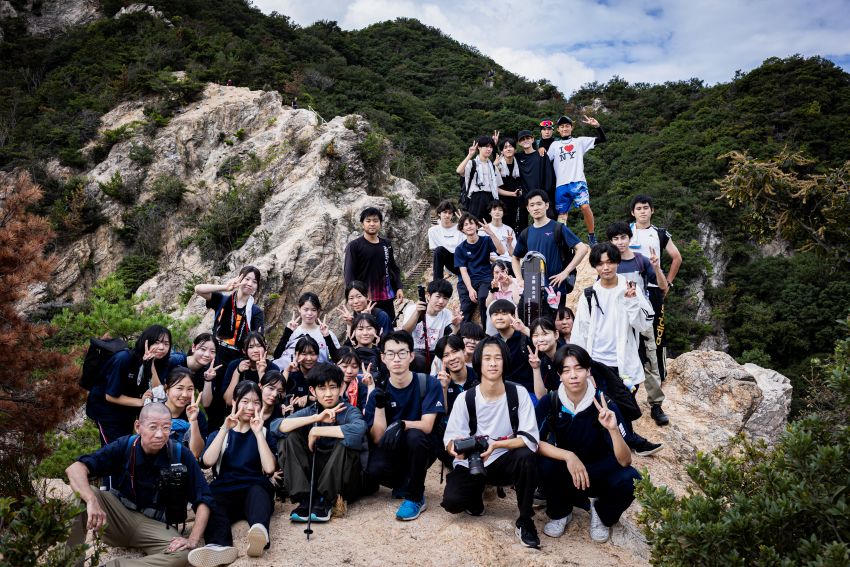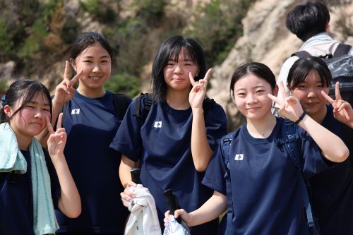 標高は低く、距離も短いものの、急上昇と急降下を繰り返す西コースでは、生徒・教員有志と卒業生の約40名が須磨浦公園から新神戸を目指しました。多くのピークを越えては市街地を通過、再度トレイルへ。今回は異例の9月下旬という実施、残暑とは言わないまでも、防寒万全12月の全山縦走「ぜんじゅう」を何度となく経験してきた先頭筆者には、こたえる暑さでした。初めて参加した生徒諸君、本当はもうちょっと涼しいのですよ。暑さと疲労と戦いつつゴールを目指す。新神戸駅は山肌に隣接して作られているため、駅の幅が狭く、新幹線の駅としては稀な構造。このゆえに、終盤暗闇の中をさまようかのように下山していたら突然現れたゴールに、一同の安堵、達成感といったらこの上ないものでした。