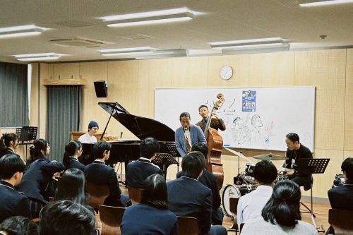 本物の素晴らしいジャズに触れ、生徒たちと教職員は晴れやかな表情で拍手を送りました。ありがとうございました!